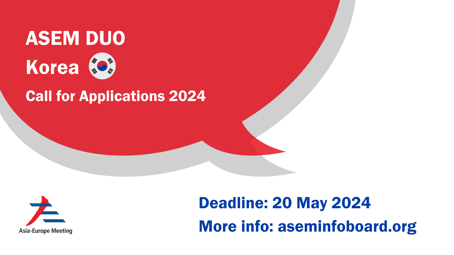DUO-Korea Programme, which was established in 2001, is sponsored by the Ministry of Education of the Republic of Korea with an aim to promote exchanges of people between Korean and European ASEM member countries on a balanced and permanent basis. The program has supported the exchange projects for professors, students, and teachers by 2008, but, since 2009, it is concentrated on supporting the student exchanges. Over the past 23 years, more than 2,216 professors, students, and teachers have been awarded the fellowship.